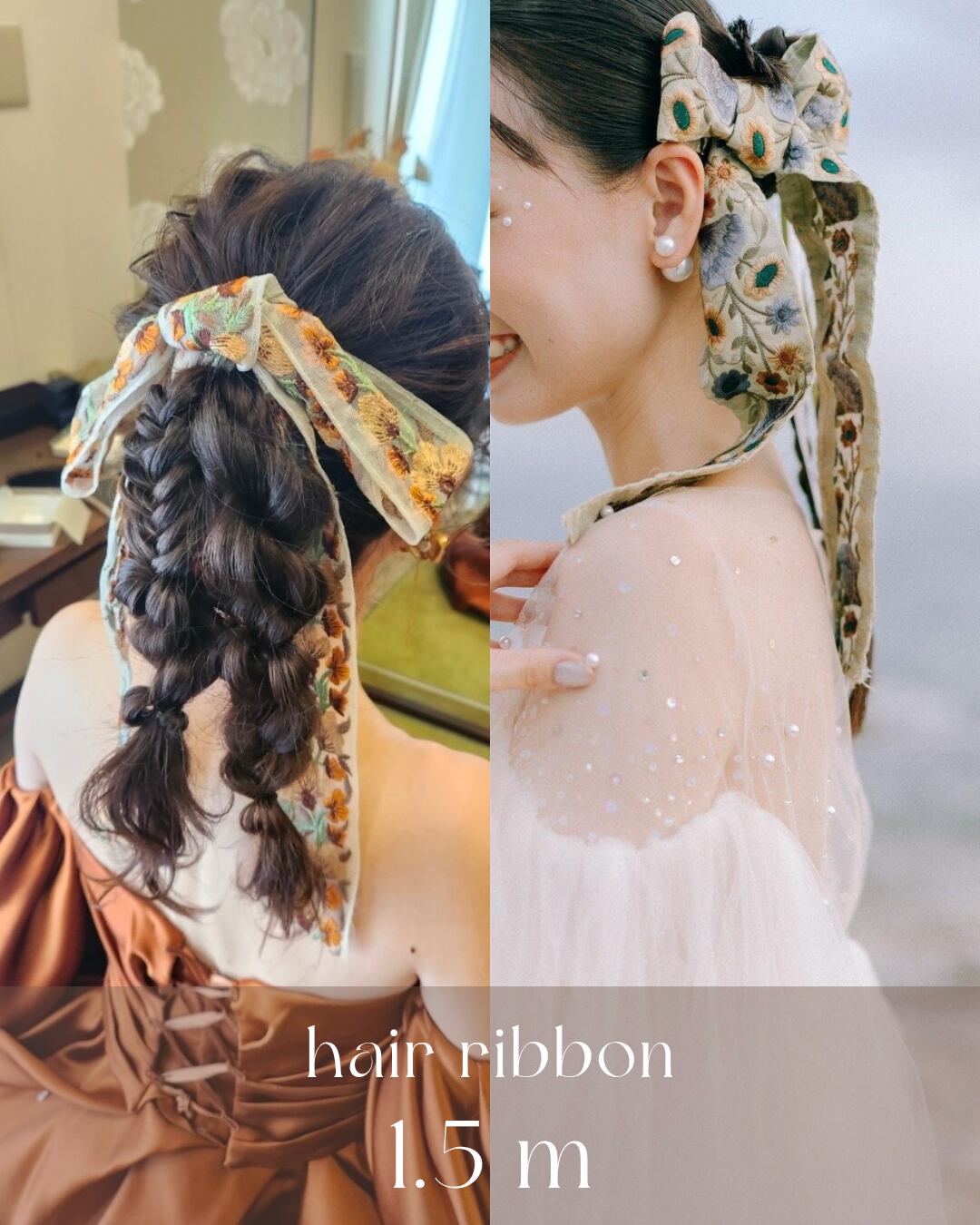 ヘア用に、ブーケリボン用に、ウェルカムスペース用にと過去のお客様にも様々な用途でご購入いただいております!