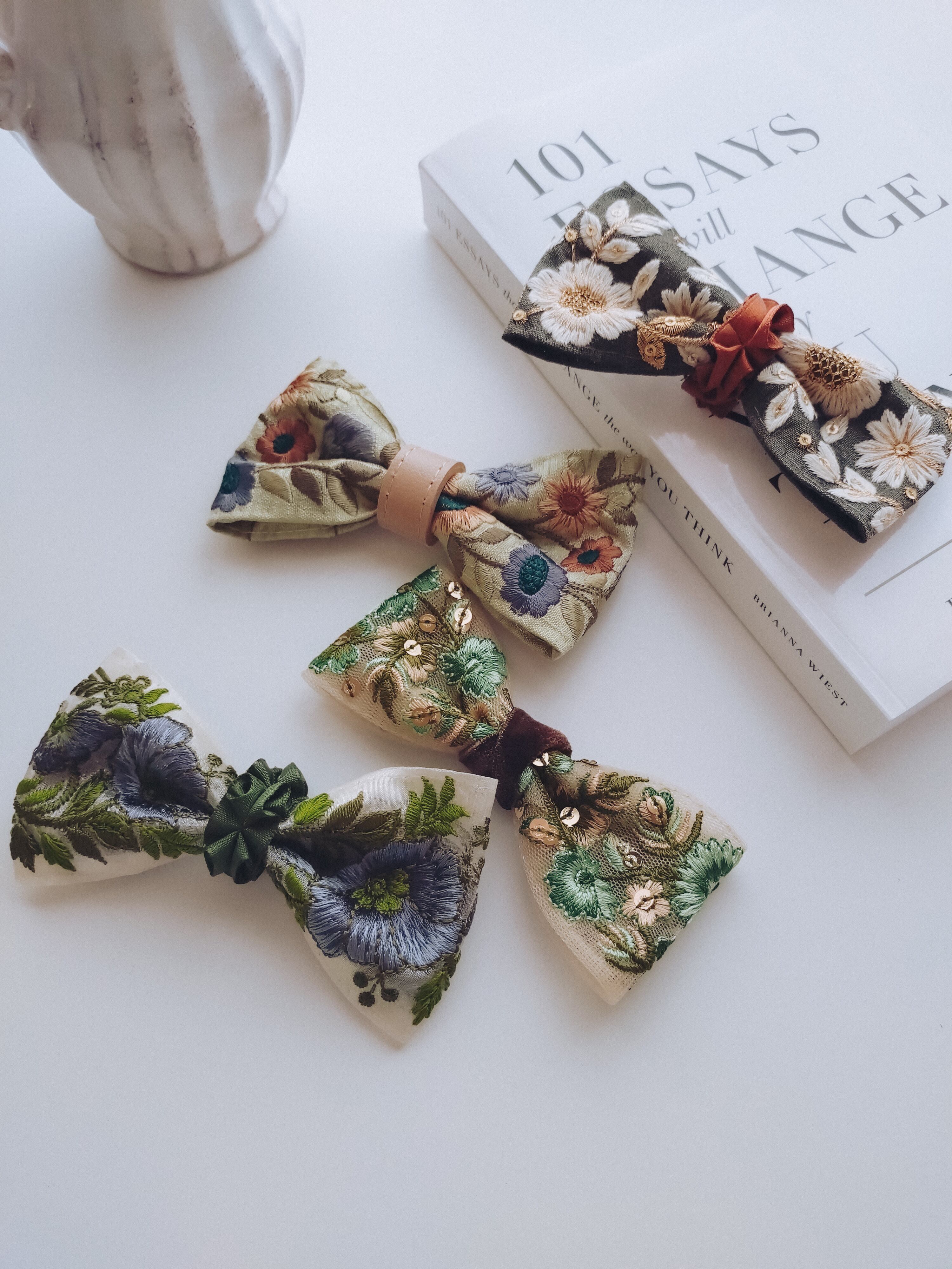 個性的な刺繍を蝶ネクタイにしているため柄の出方が一点一点異なり、唯一無二のtieとなります
