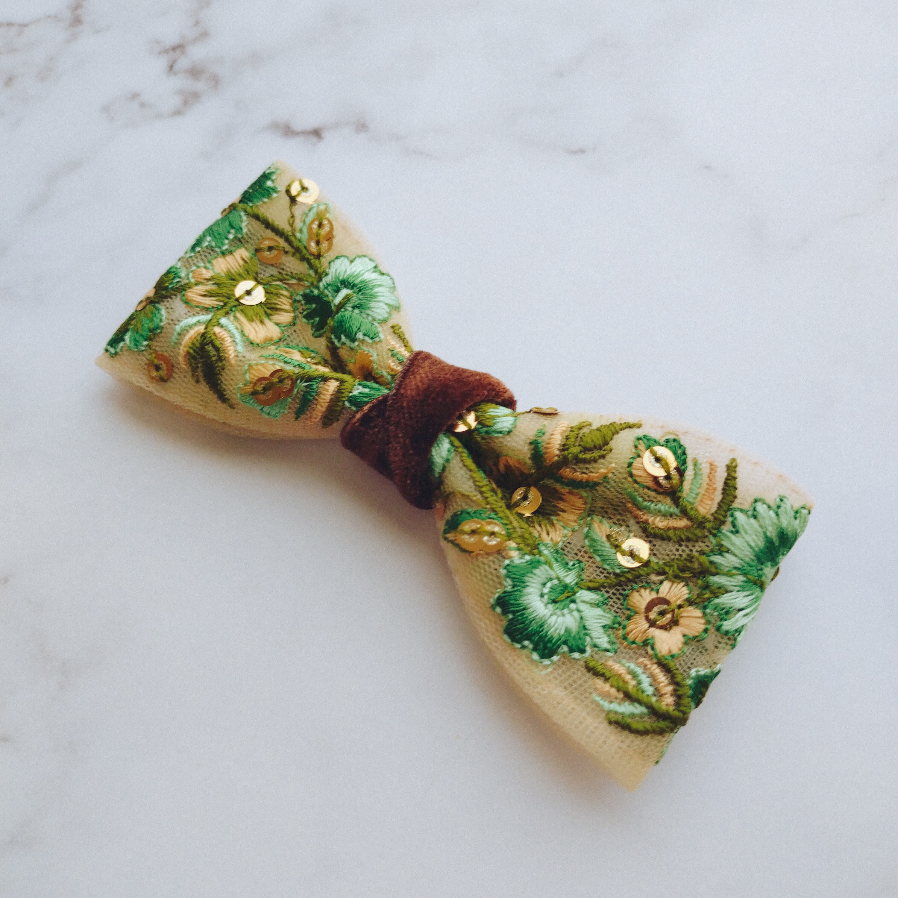 個性的な刺繍を蝶ネクタイにしているため柄の出方が一点一点異なり、唯一無二のtieとなります