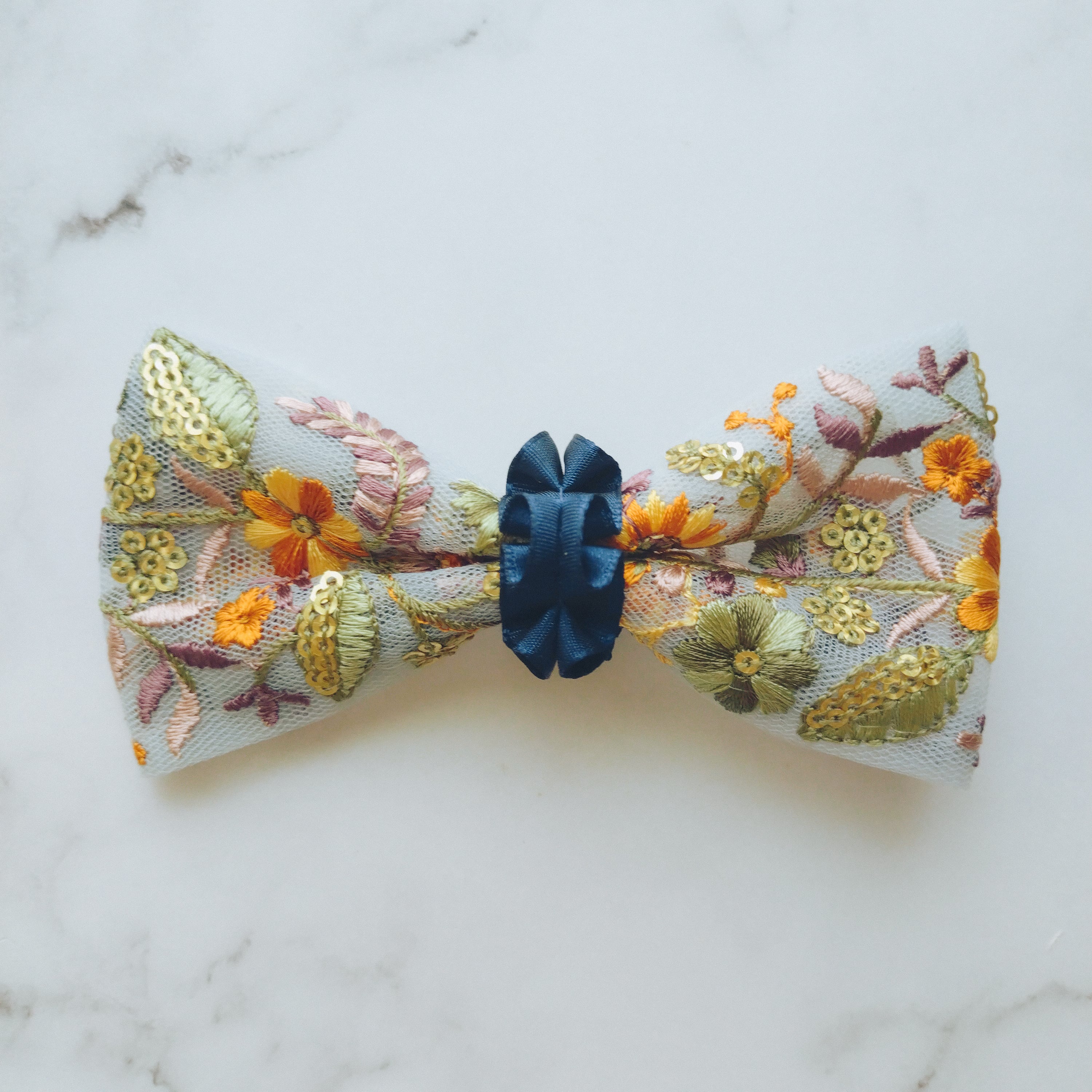 ライトブルーがベースのチュール生地の蝶ネクタイ
