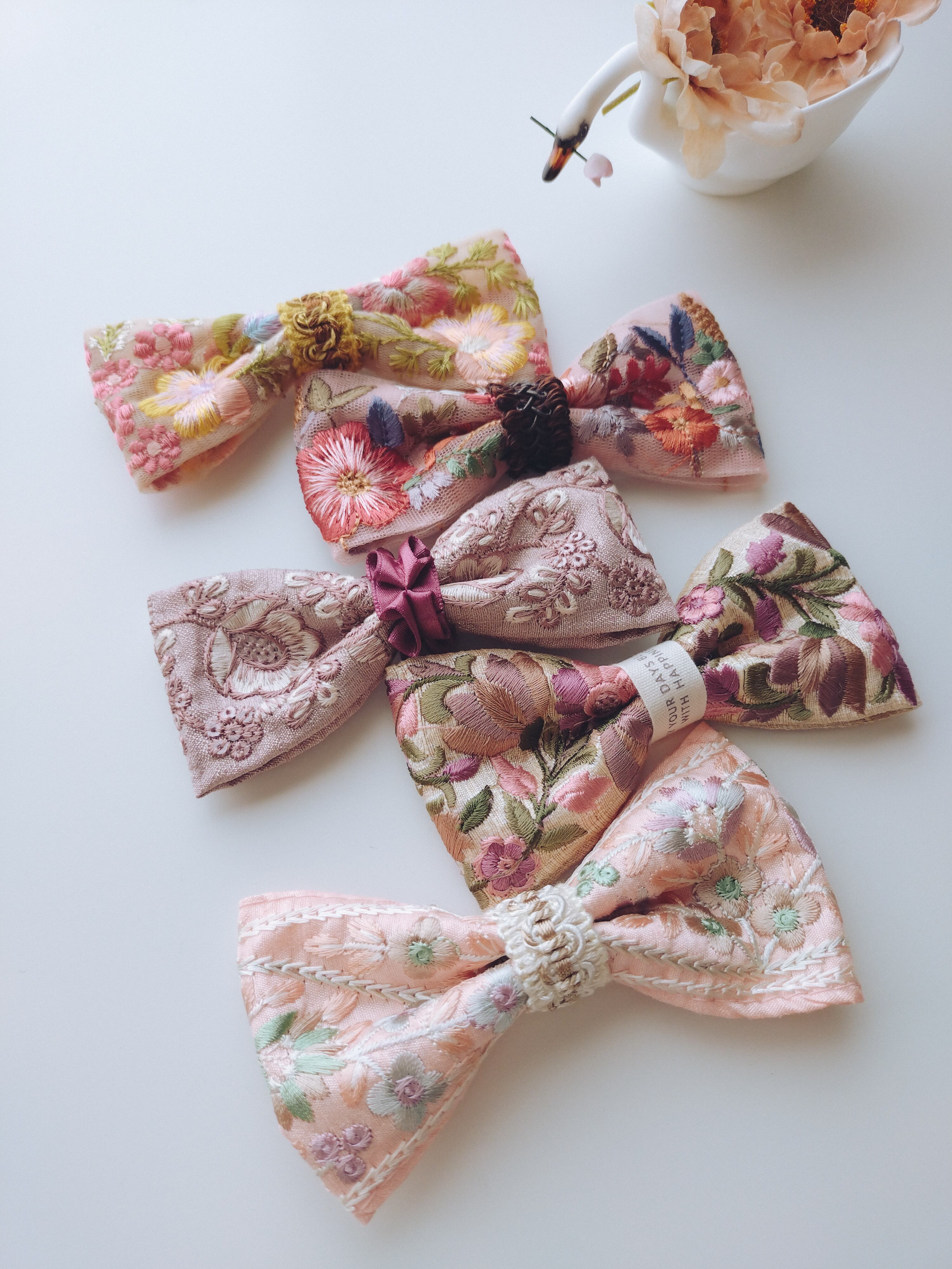 個性的な刺繍を蝶ネクタイにしているため柄の出方が一点一点異なり、唯一無二のtieとなります