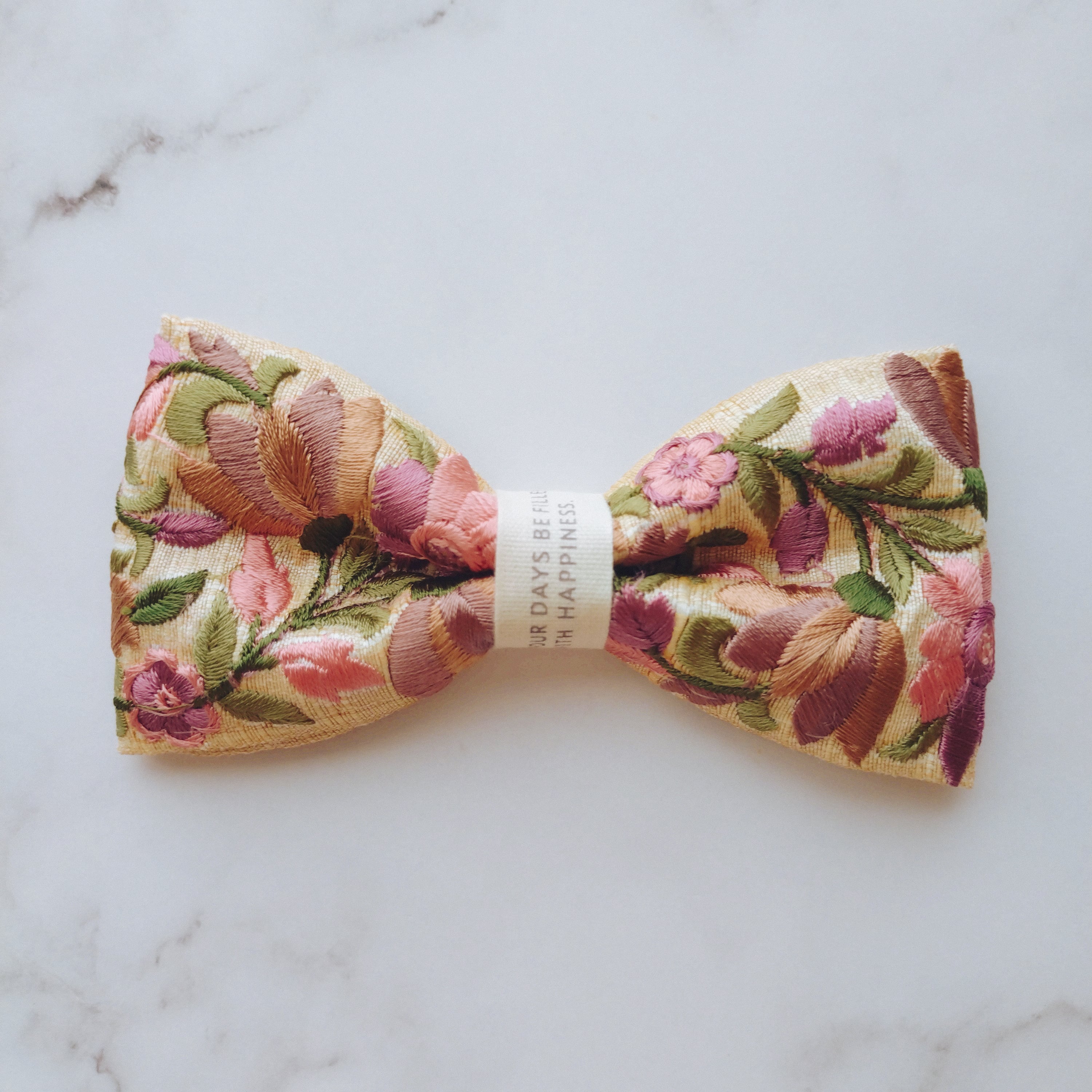 まるでお花畑のような生地は着けるだけで主役になれる蝶ネクタイです