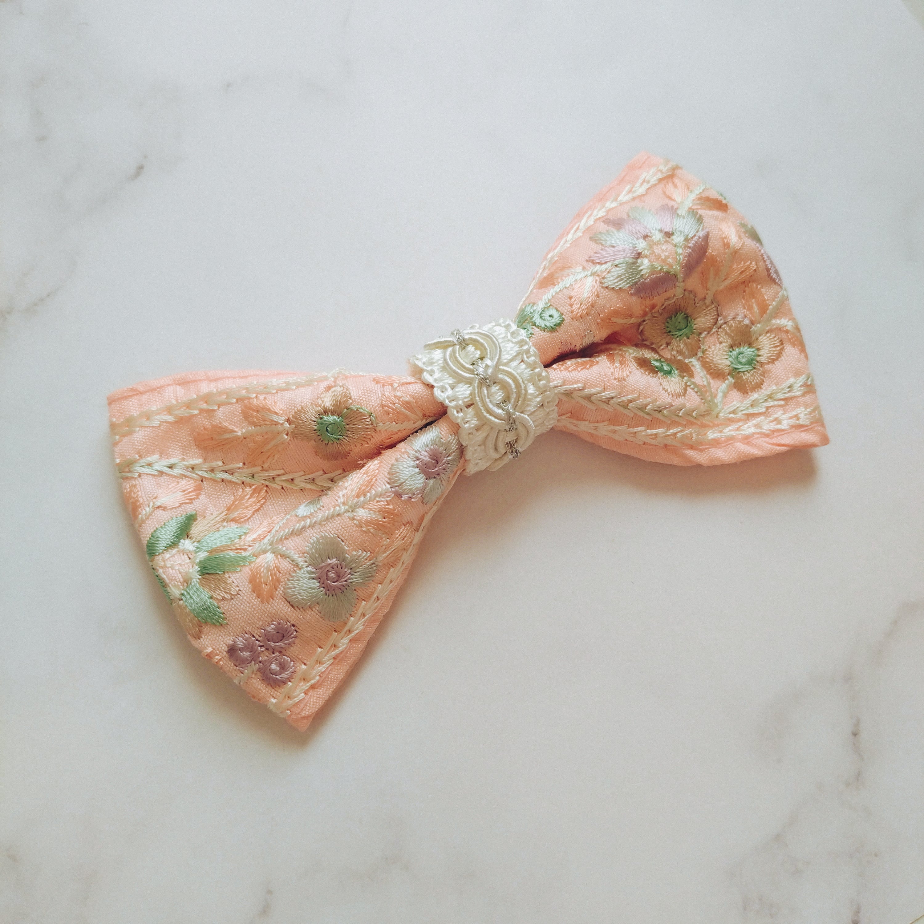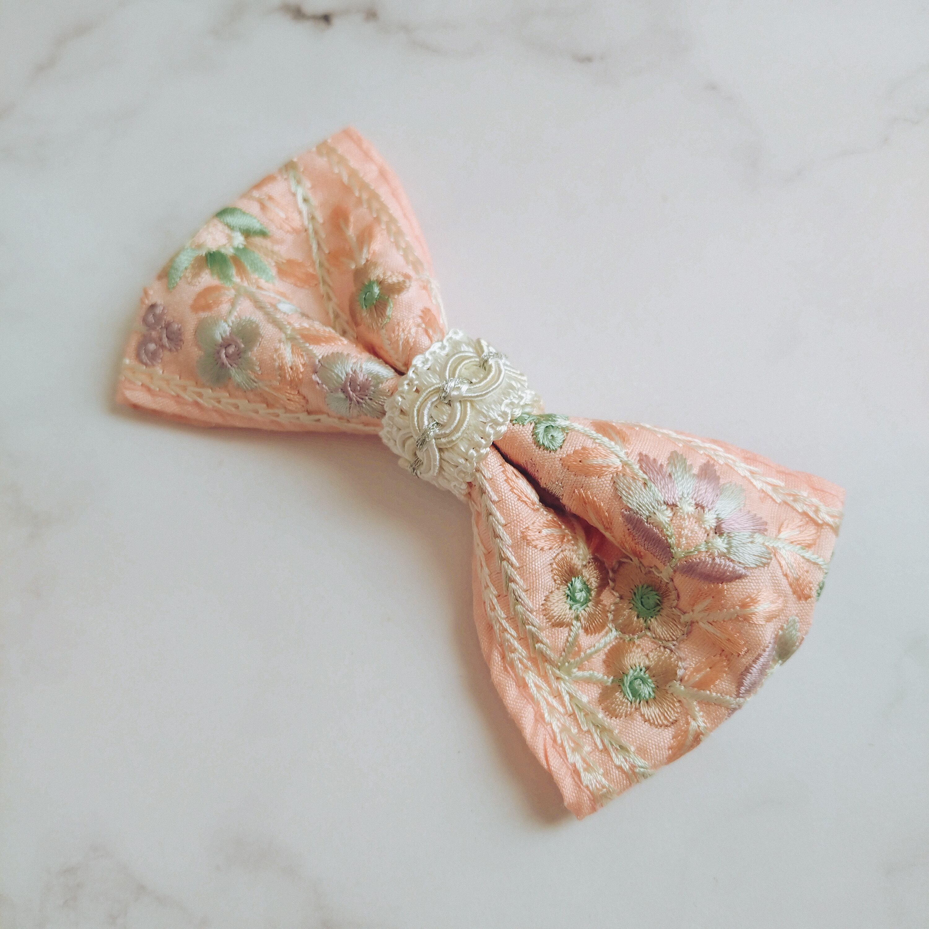 個性的な刺繍を蝶ネクタイにしているため柄の出方が一点一点異なり、唯一無二のtieとなります