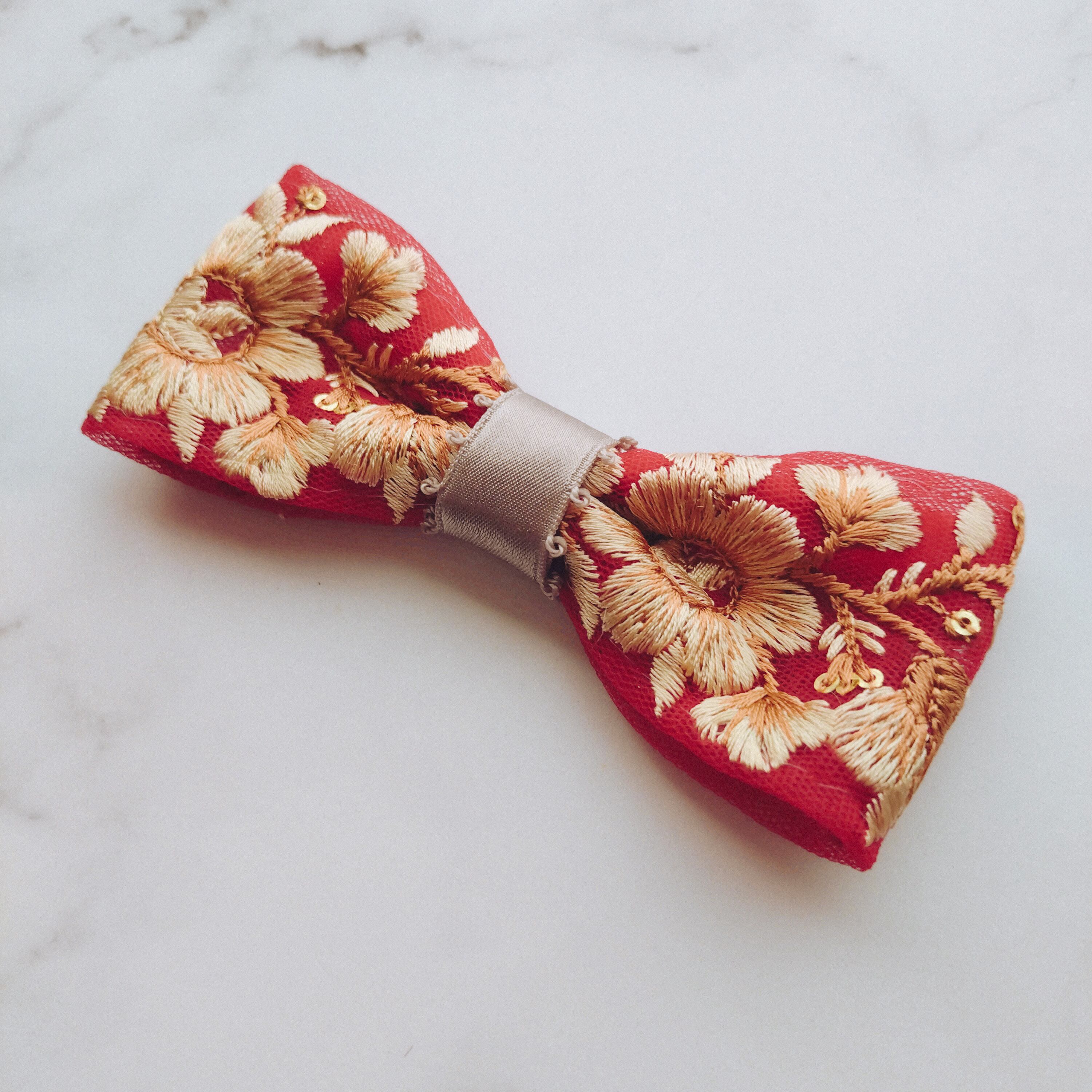 クリスマスといえば!の「レッド」をメインにした珍しい刺繍蝶ネクタイ