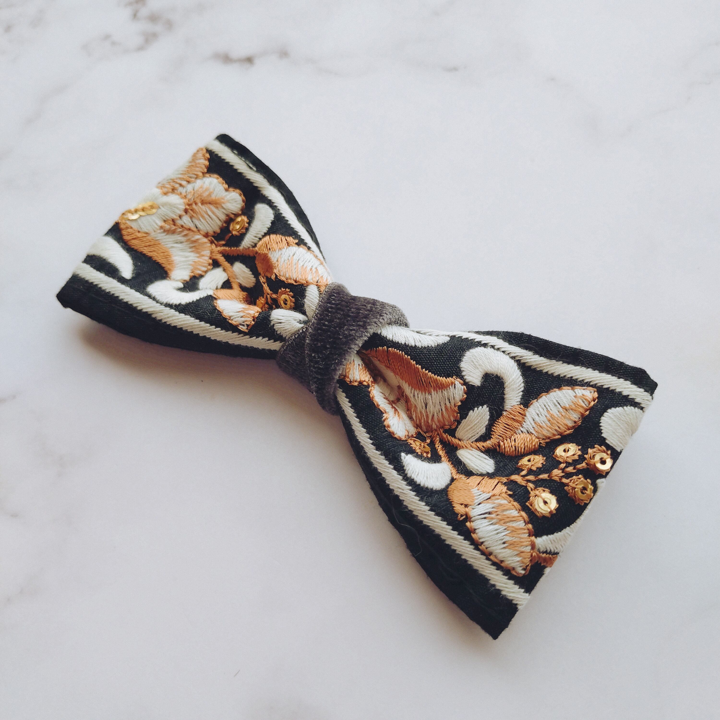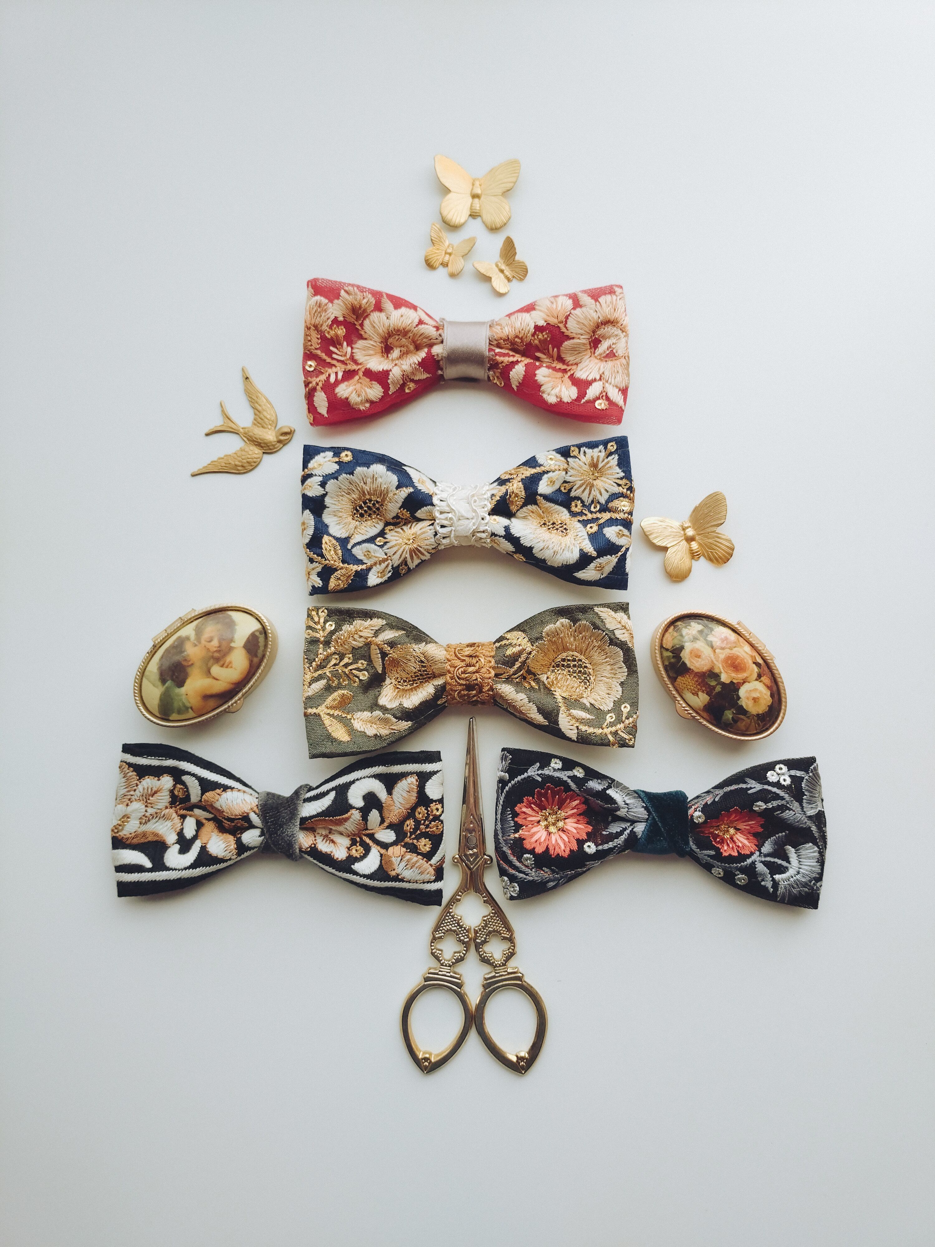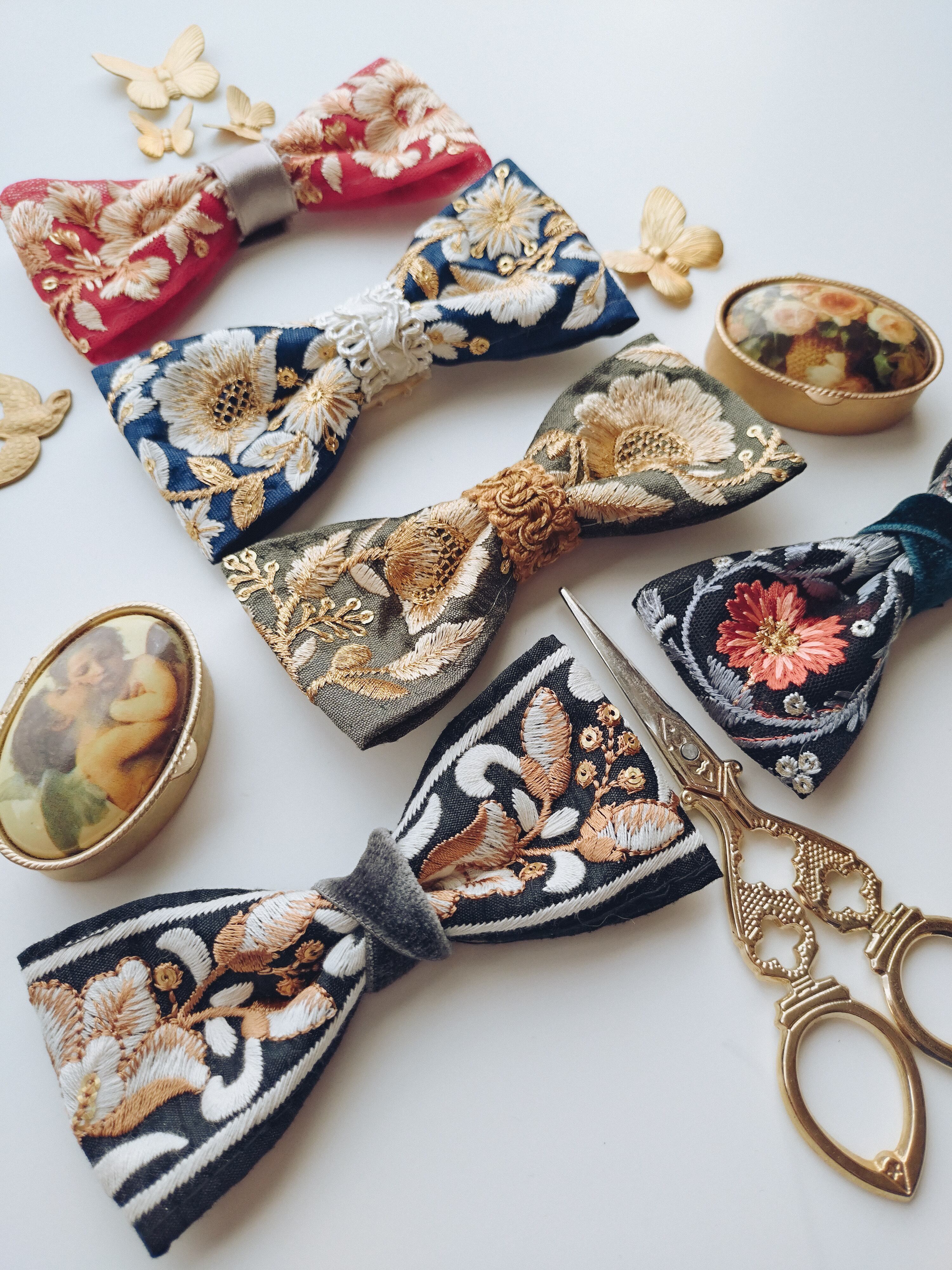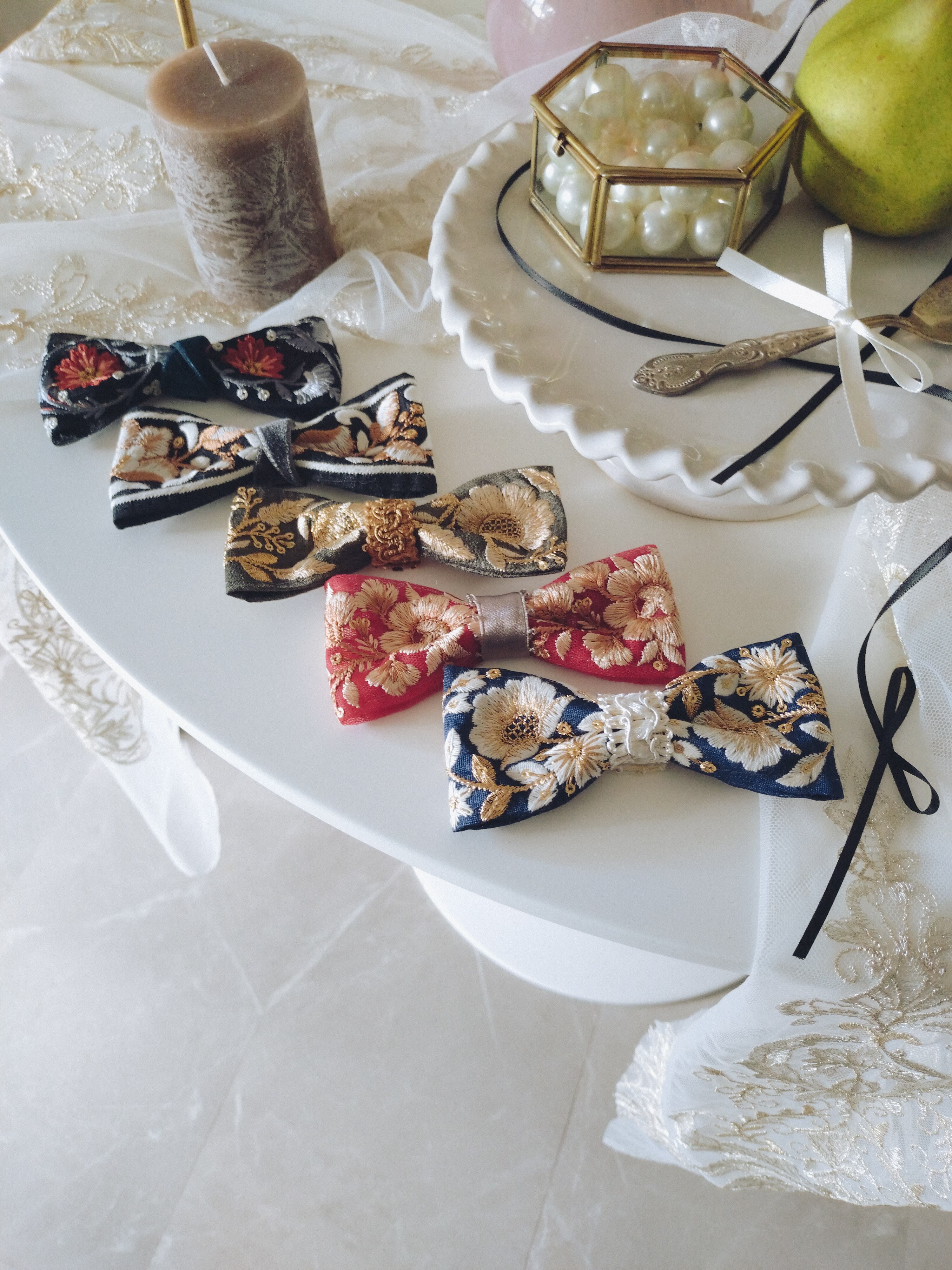 個性的な刺繍を蝶ネクタイにしているため柄の出方が一点一点異なり、唯一無二のtieとなります