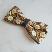 通年通して人気のあるモスグリーンの生地にホワイトの小花柄が印象的な蝶ネクタイです