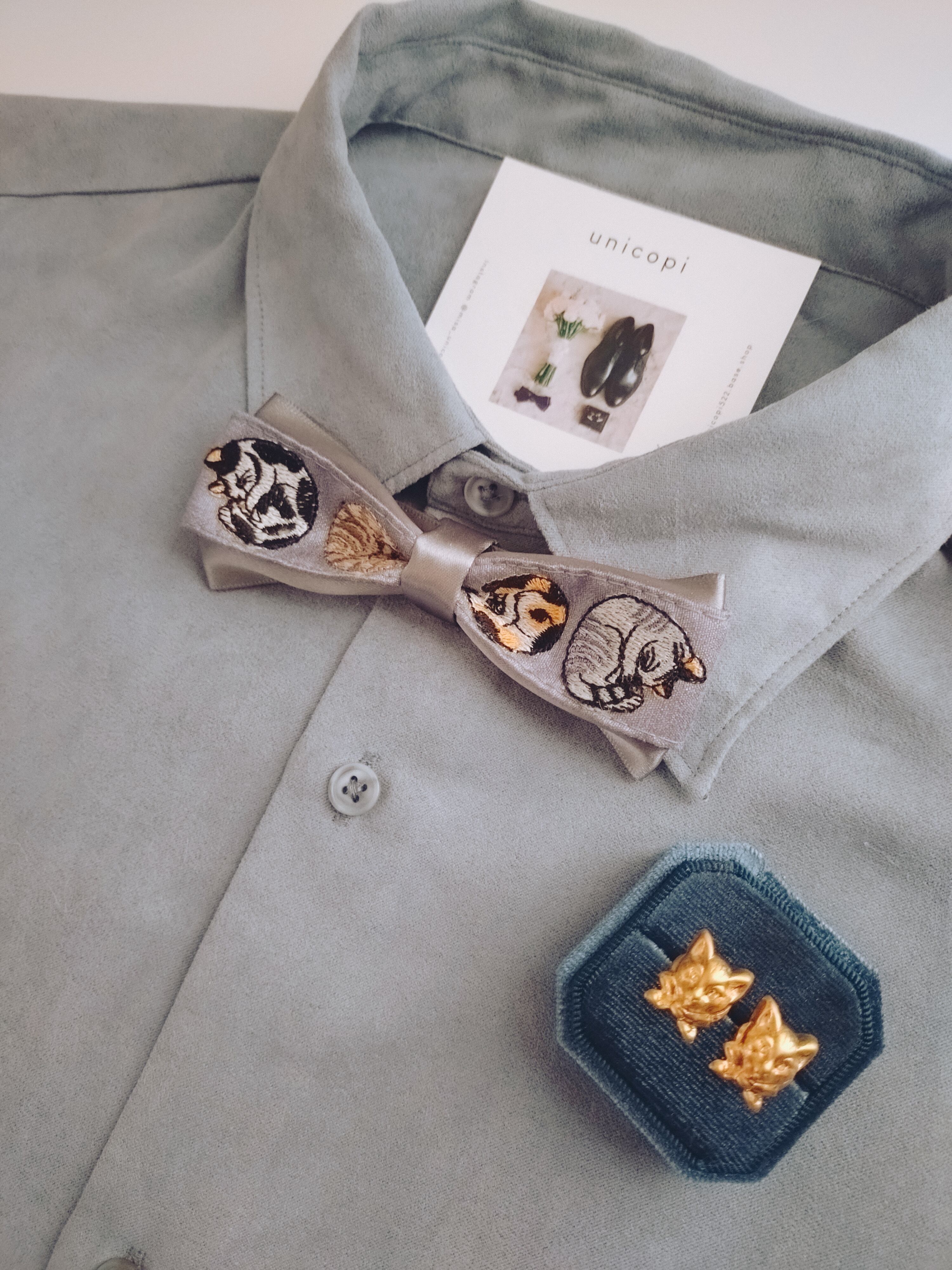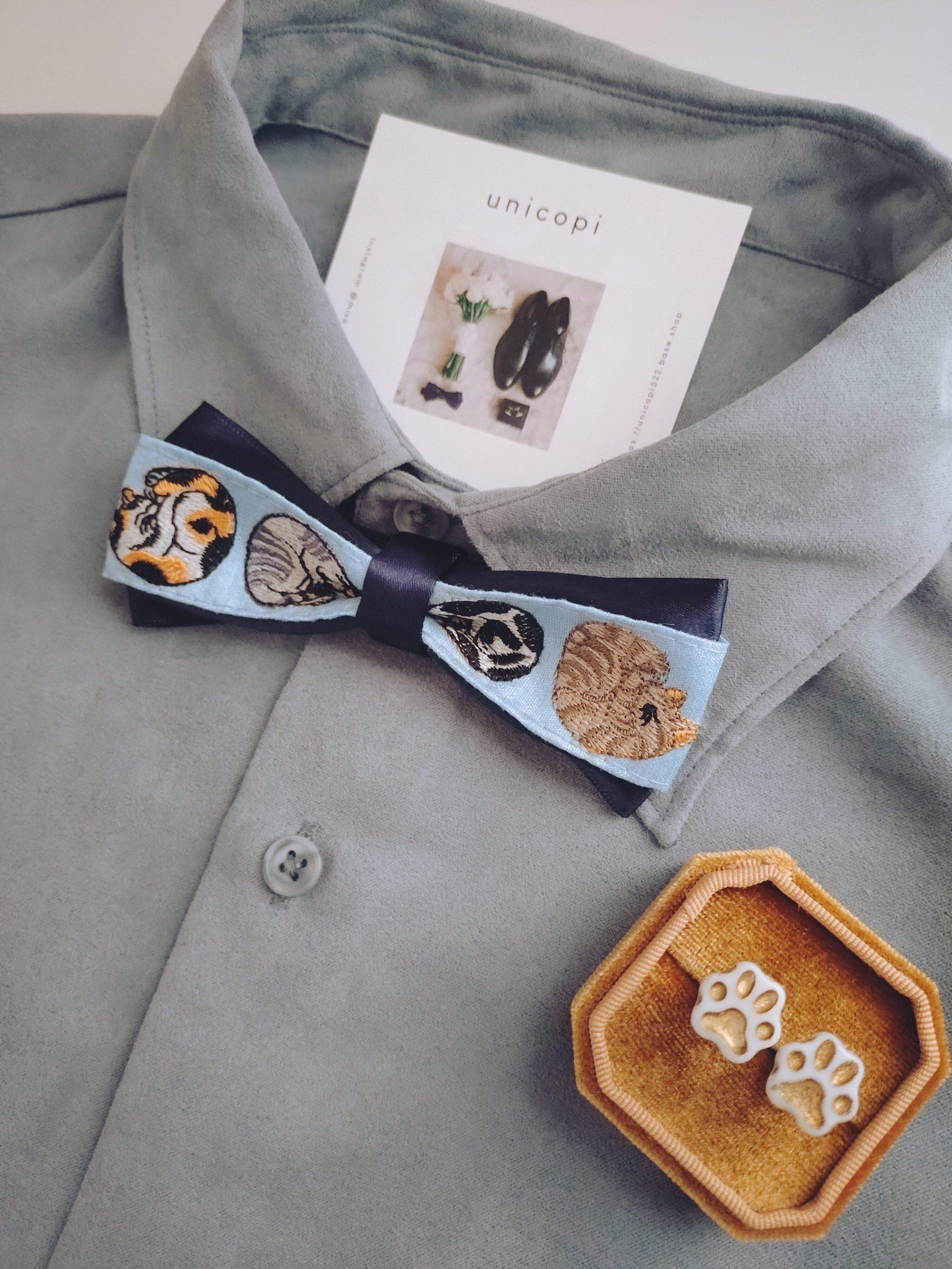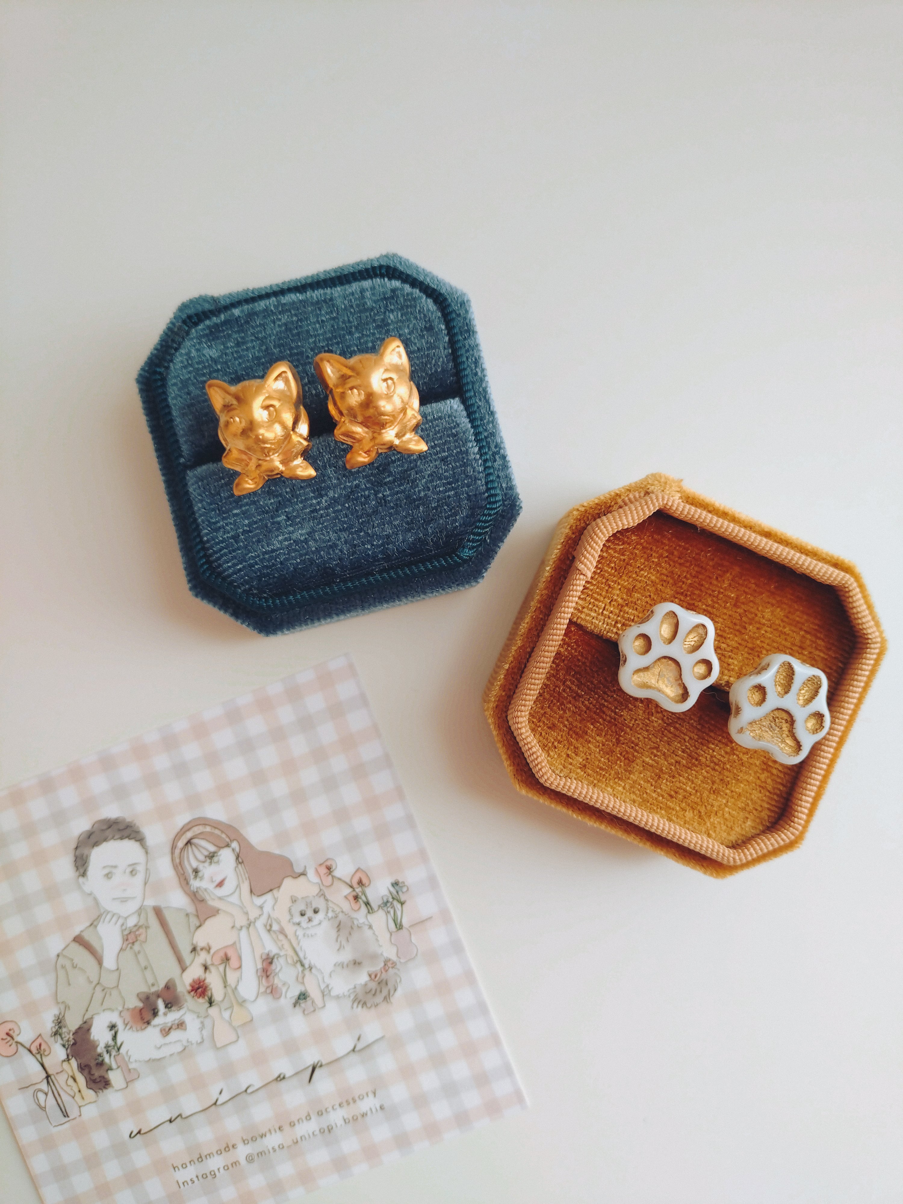 真鍮素材のねこ型カフス&より軽い素材の肉球カフス