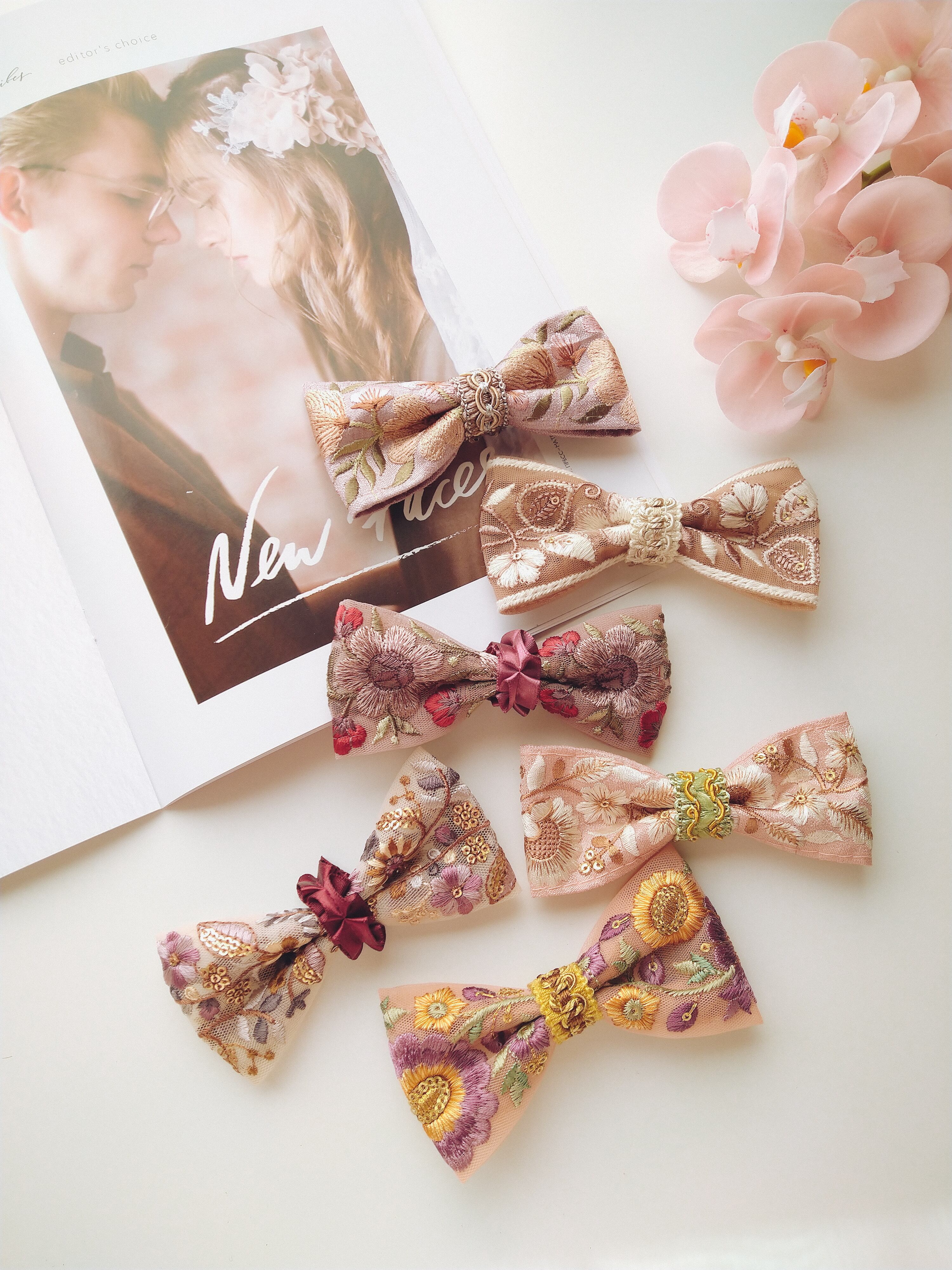 個性的な刺繍を蝶ネクタイにしているため柄の出方が一点一点異なり、唯一無二のtieとなります