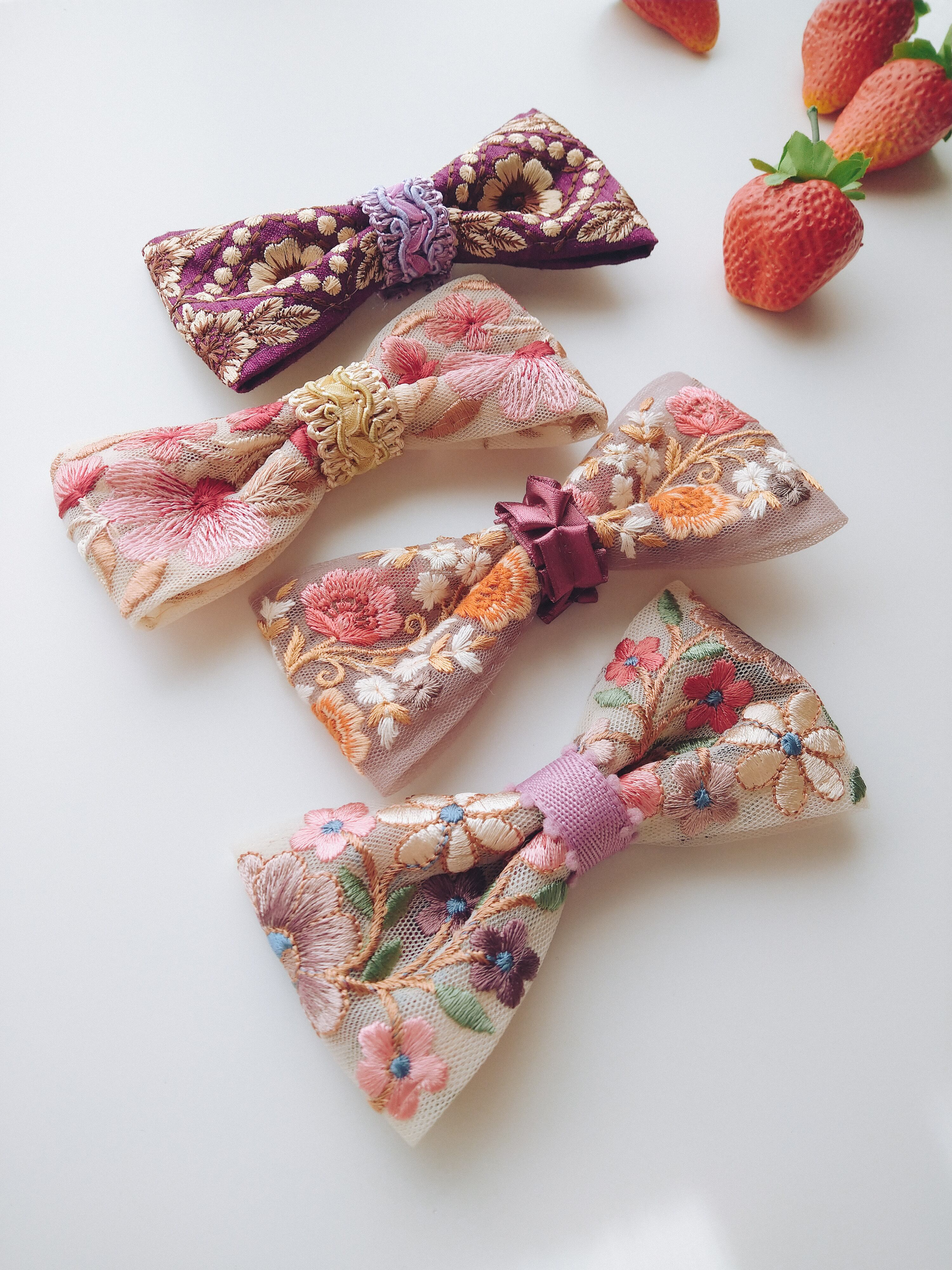 個性的な刺繍を蝶ネクタイにしているため柄の出方が一点一点異なり、唯一無二のtieとなります