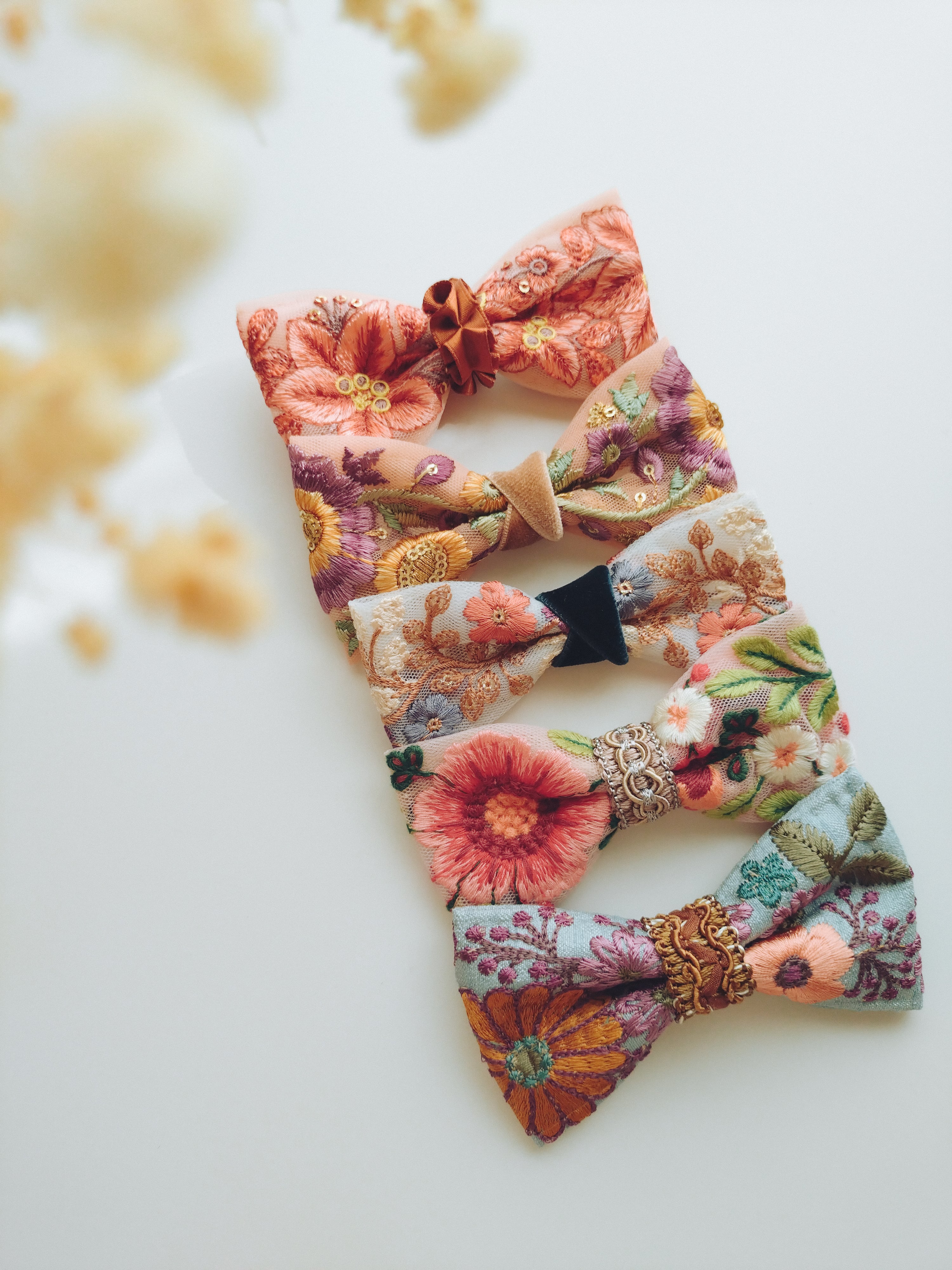 個性的な刺繍を蝶ネクタイにしているため柄の出方が一点一点異なり、唯一無二のtieとなります