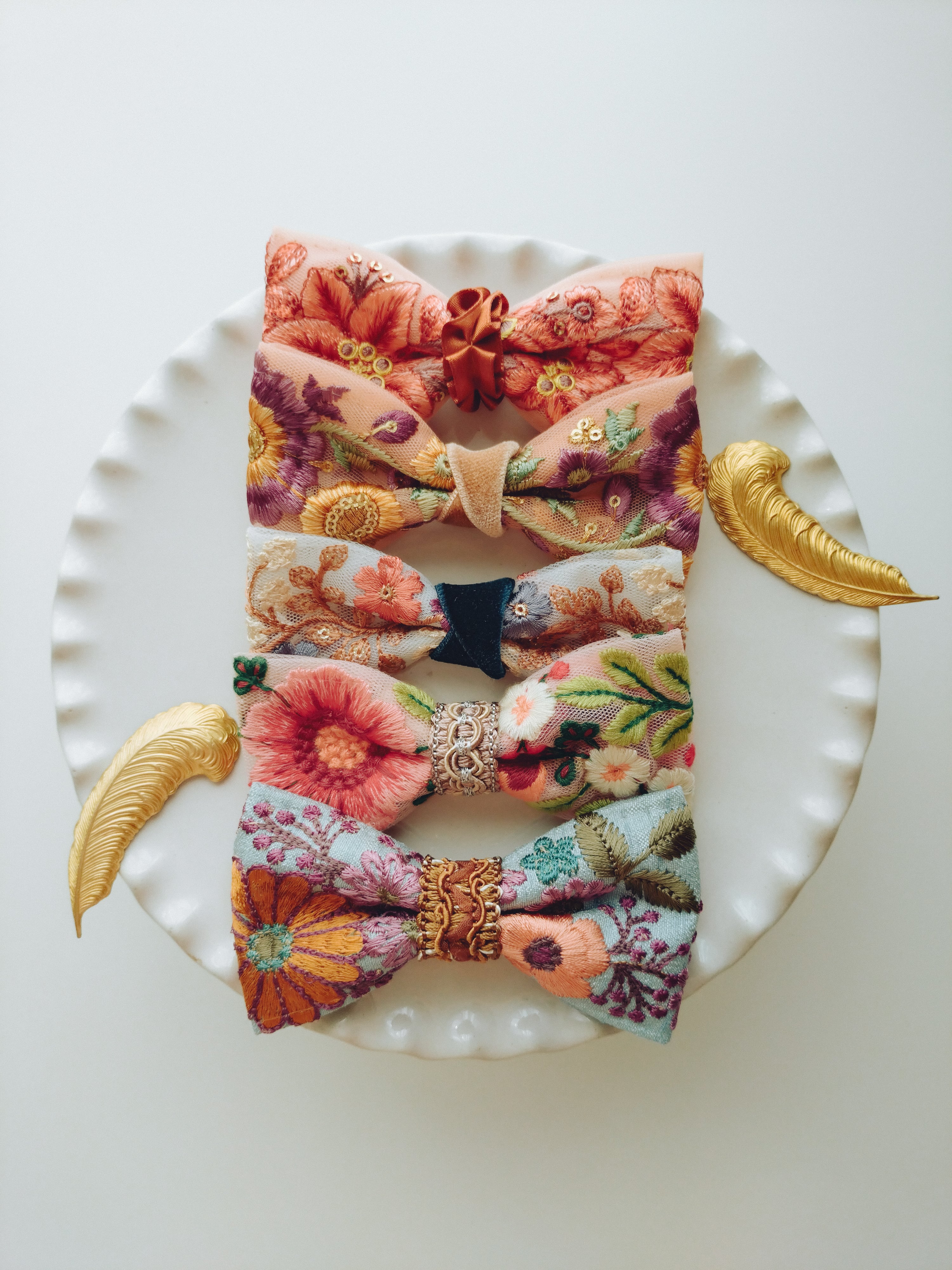 個性的な刺繍を蝶ネクタイにしているため柄の出方が一点一点異なり、唯一無二のtieとなります