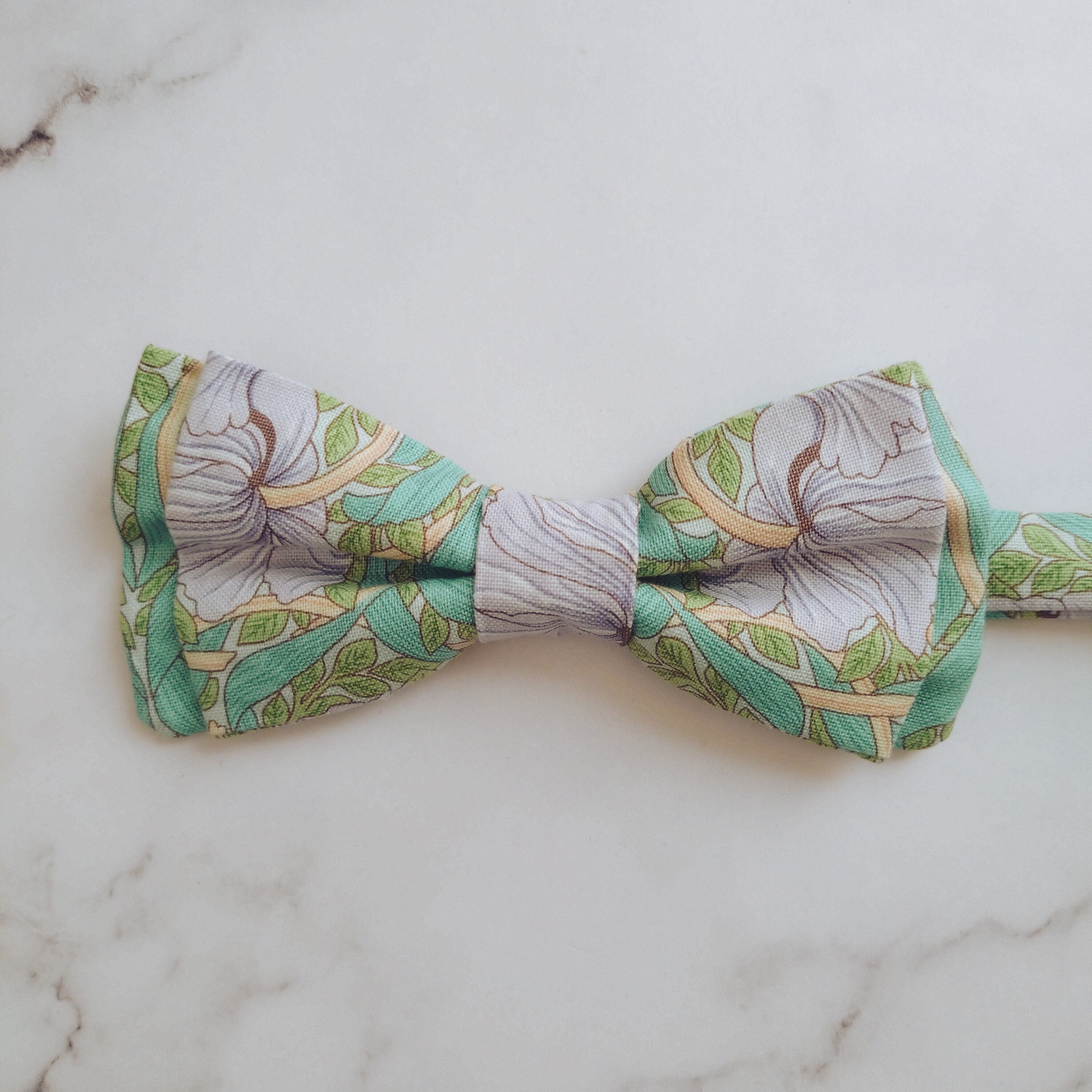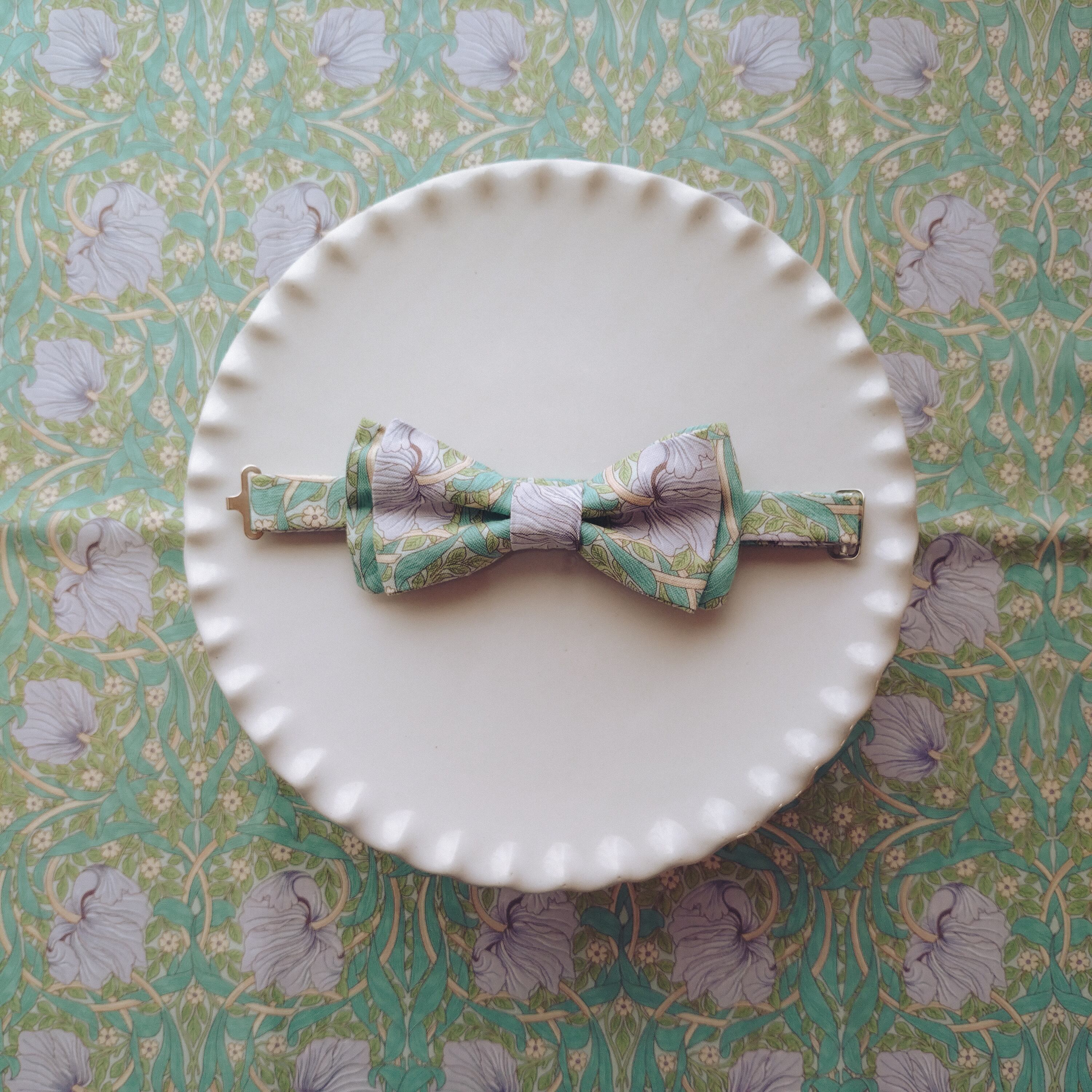 花嫁さまに大人気のウィリアムモリスの生地を使った蝶ネクタイです