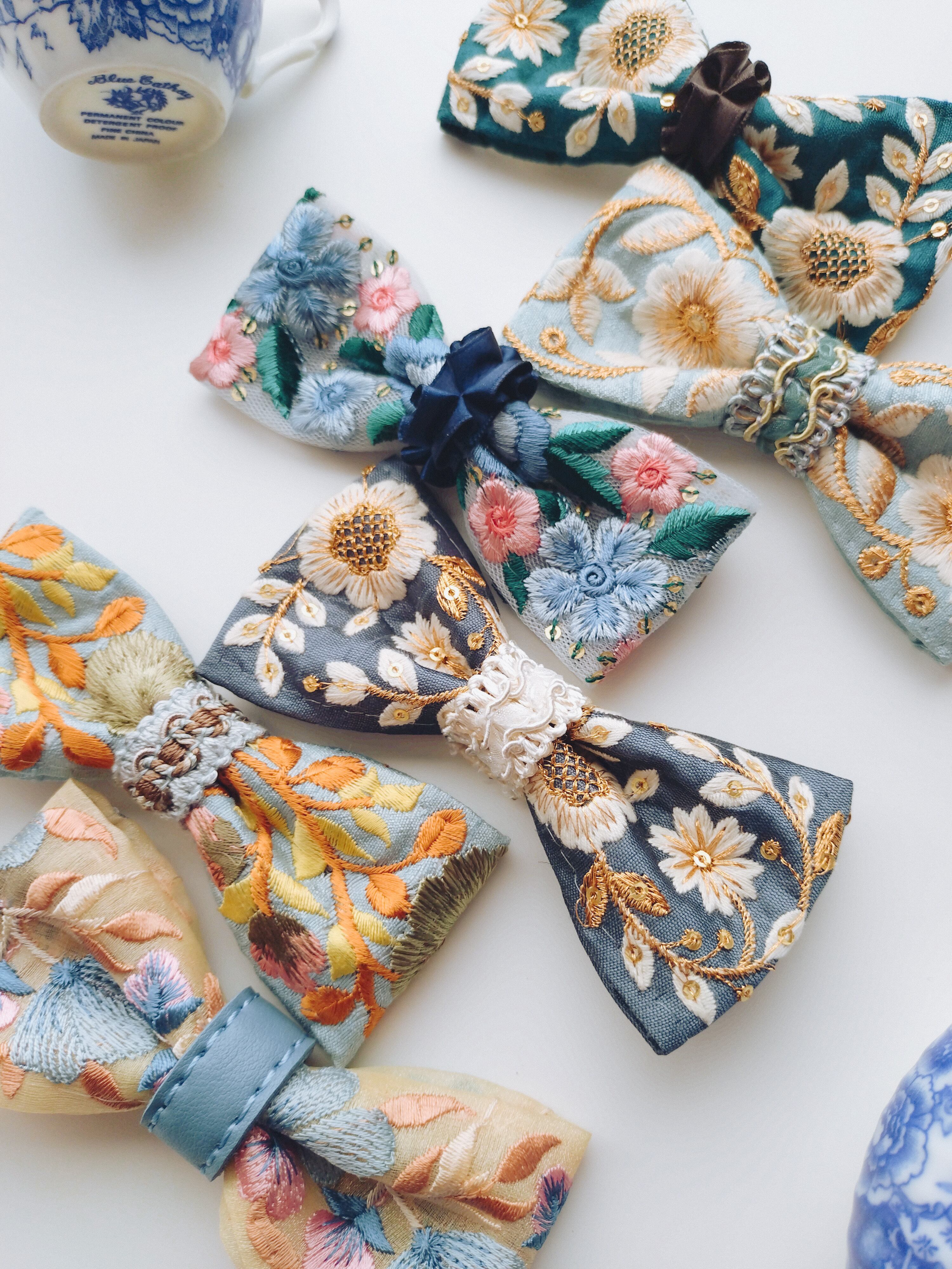 個性的な刺繍を蝶ネクタイにしているため柄の出方が一点一点異なり、唯一無二のtieとなります