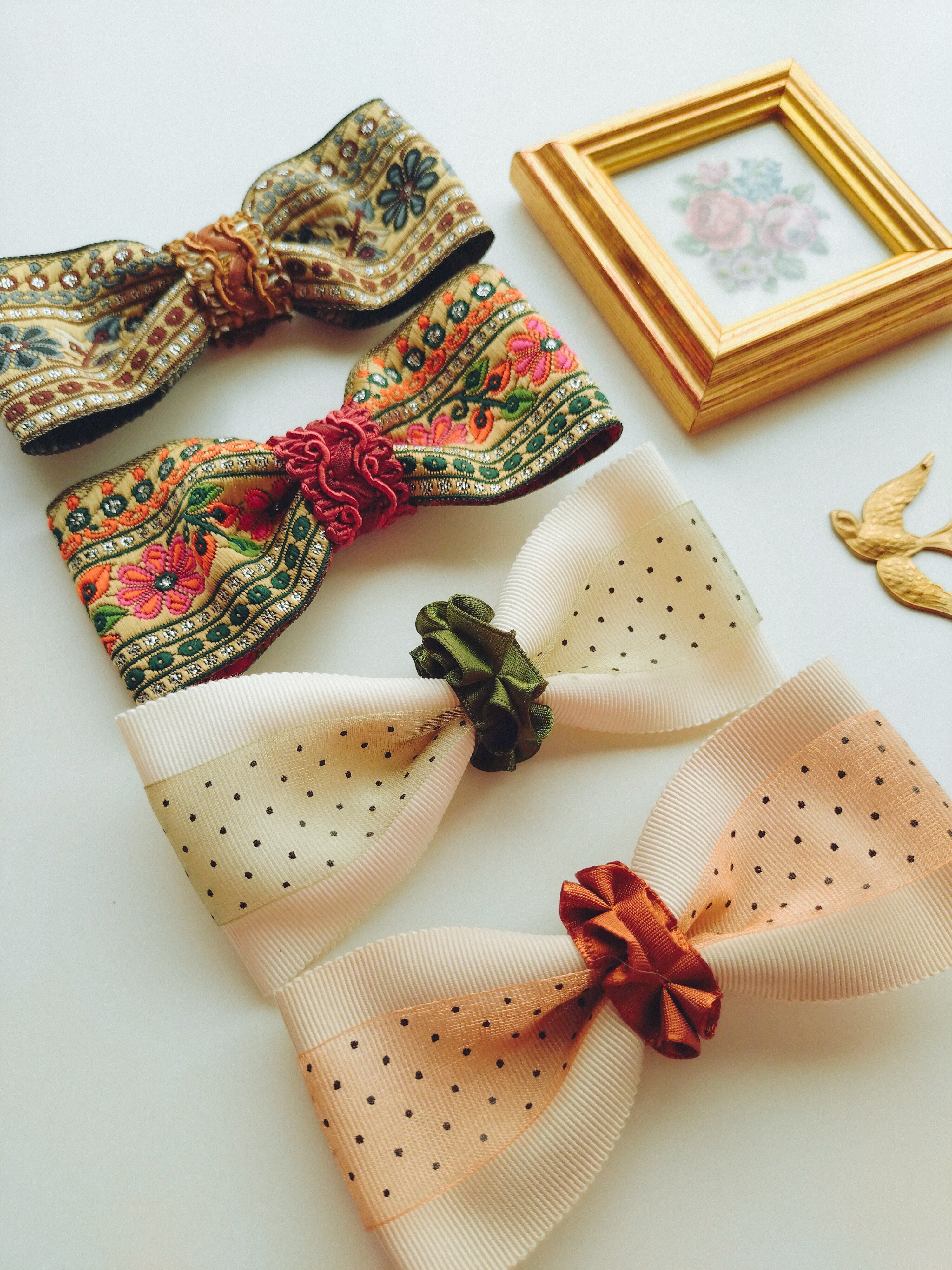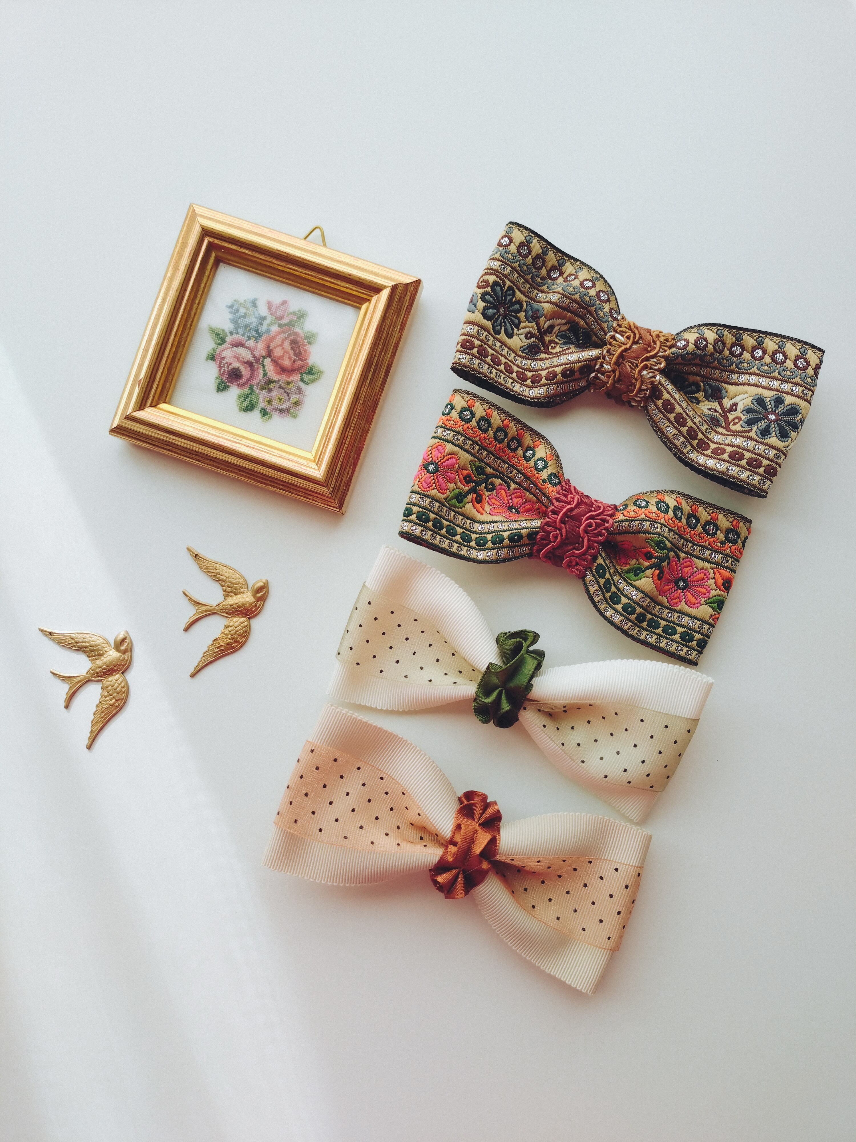 シンプルなライトベージュのグログラン生地にオーガンジーの水玉(オレンジ)をあわせたオリジナルデザイン